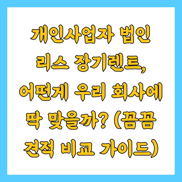 개인사업자 법인 리스 장기렌트, 어떤게 우리 회사에 딱 맞을까? (꼼꼼 견적 비교 가이드)
